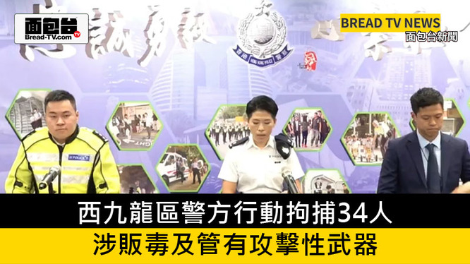 公告:面包台「本地新聞報導」西九龍區警方行動拘捕34人 涉販毒及管有攻擊性武器