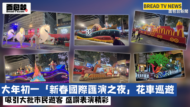 面包台「本地新聞報導」大年初一「新春國際匯演之夜」花車巡遊 吸引大批市民遊客 盛讚表演精彩 李家超:加大力度向全球推廣香港獨特魅力