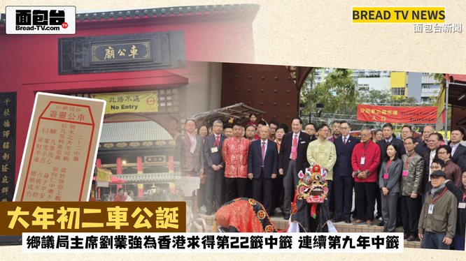 面包台「本地新聞報導」大年初二車公誕 鄉議局主席劉業強為香港求得第22籤中籤 連續第九年中籤
