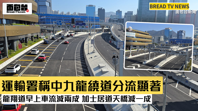 面包台「本地新聞報導」運輸署稱中九龍繞道分流顯著 龍翔道早上車流減兩成 加士居道天橋減一成